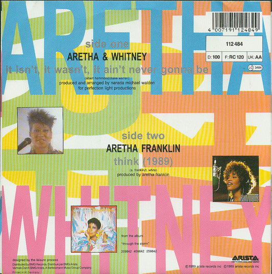 Aretha Franklin & Whitney Houston - It Isn't It Wasn't It Ain't Never Gonna Be (7", Single) (Very Good Plus (VG+))